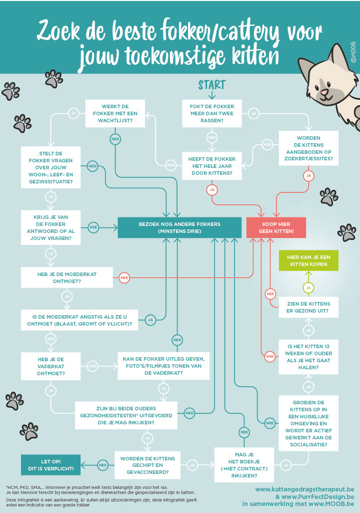 Je wil graag een kitten kopen. Je kiest een ras en vervolgens ga je op zoek naar een goeie cattery. Maar... hoe weet je wie een goeie fokker is? Er bestaat geen lijst van ‘goeie fokkers’, dus dat is voor een leek niet altijd evident. Daarom deze tips (of klik op de afbeelding hiernaast). Bron: purrfectdesign.