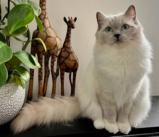 Loki is een zeer aanhankelijke en stevige fluffy Blue Lynx Point kater van een verantwoorde cattery die al meer dan 10 jaar lang een goede naam heeft in Nederland. Hij is door ons geselecteerd op o.a. karakter, uiterlijk en passend genetisch profiel. Loki is een jonge, gezonde en volledig geteste kater met een mooie stamboom. De zwangerschap van Sona verliep zonder complicaties en Amina is volgens de planning geboren 12 maart 2022 met het bovengemiddeld gewicht van 104 gram.